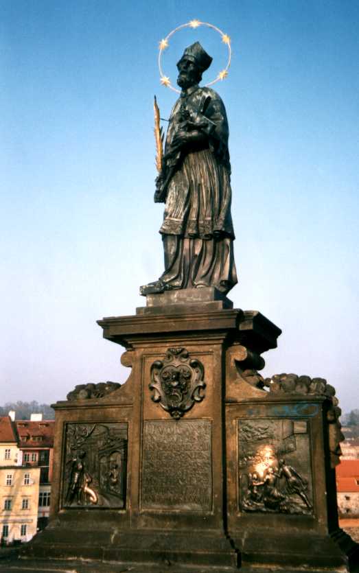 Left is the statue of St. John Nepomuk (whose tomb is in