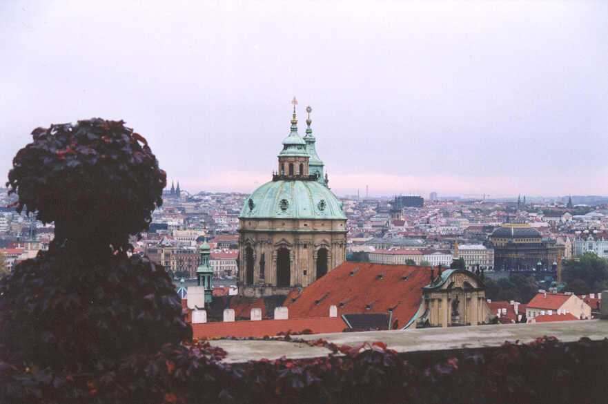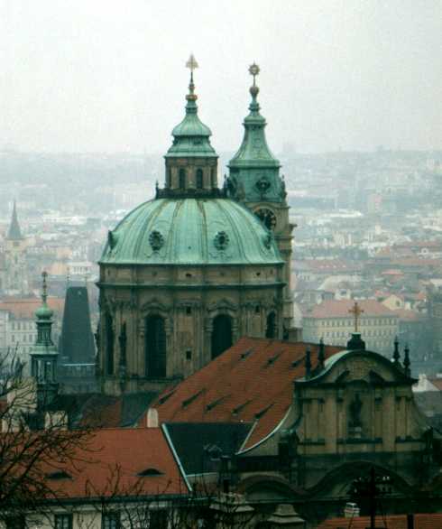 A view of the dome of St. Nicolas church in Mala Strana from Prague castle.