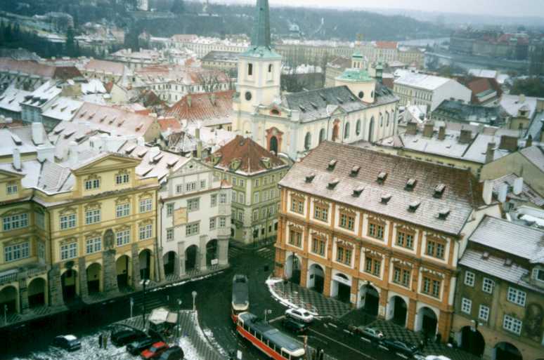 Looking down on Malostranske Namesti (the Lesser Quarter's town square) from the bell tower of St. Nicholas.